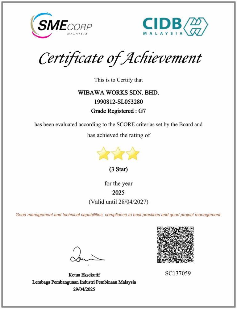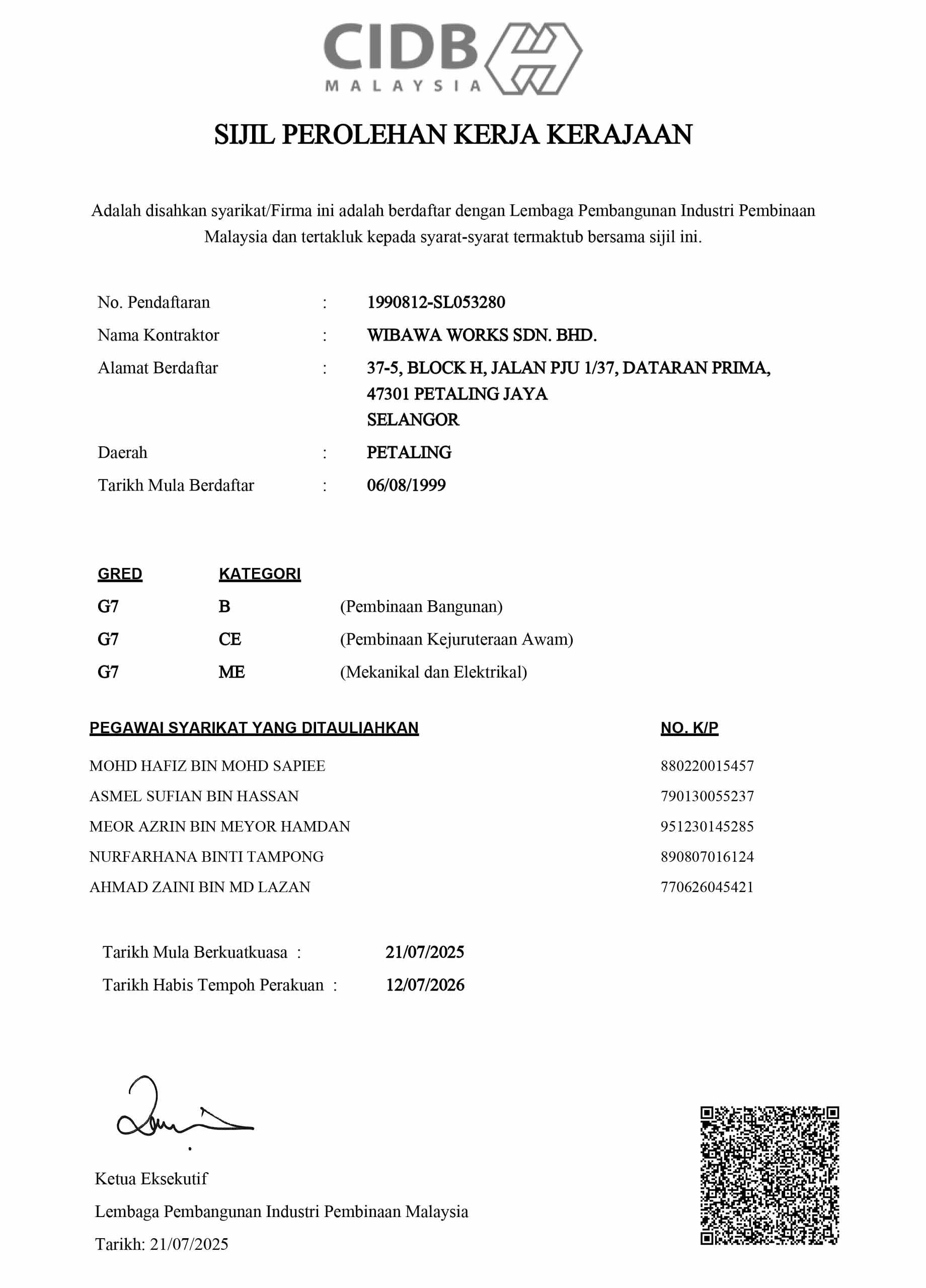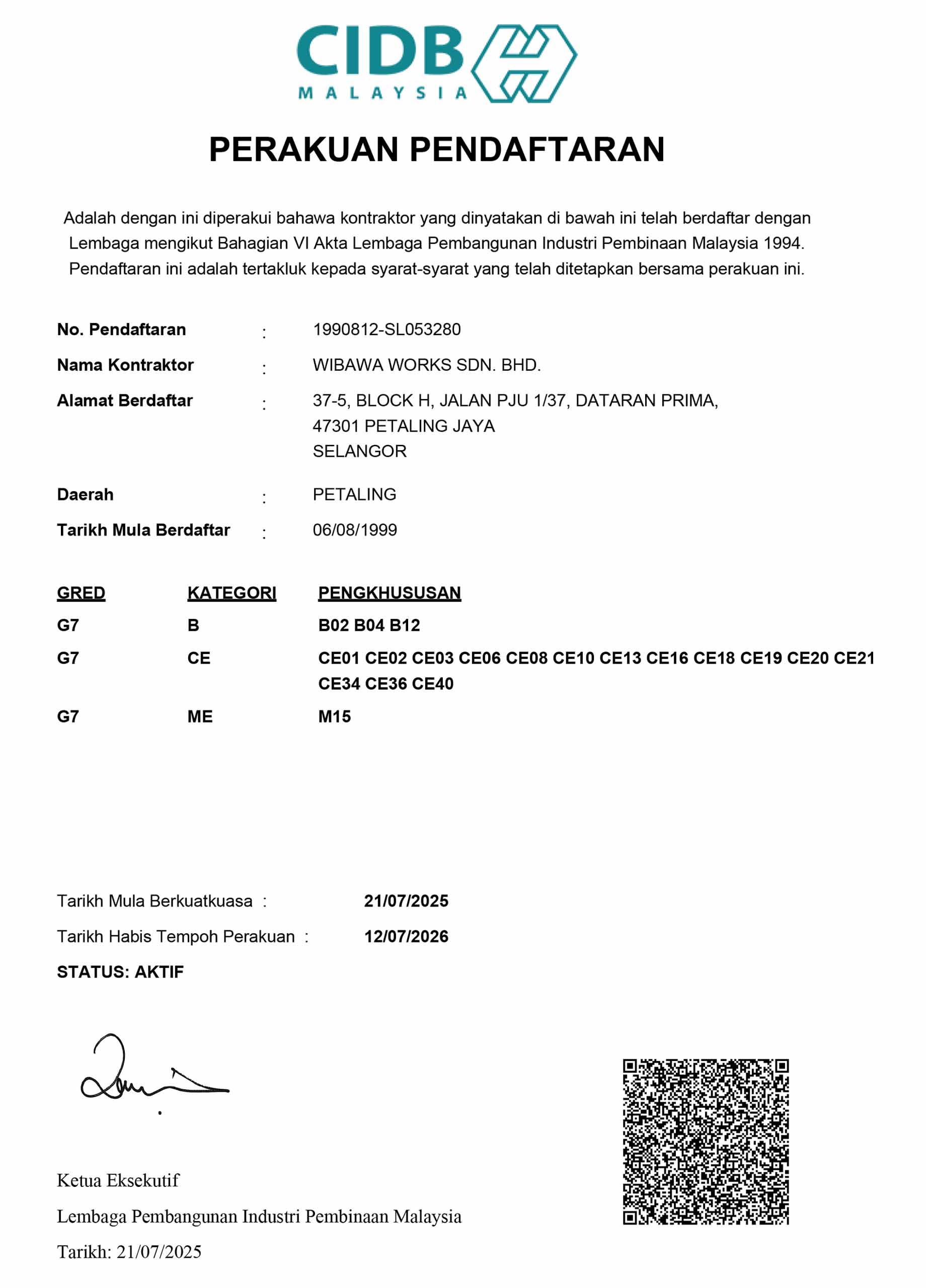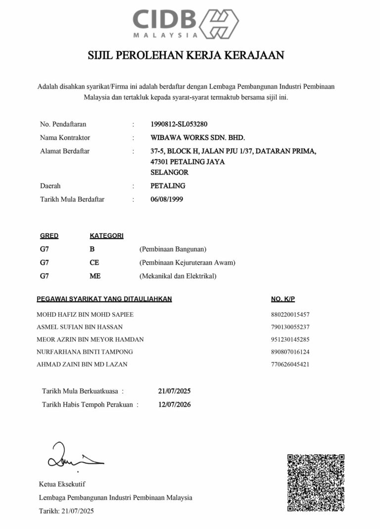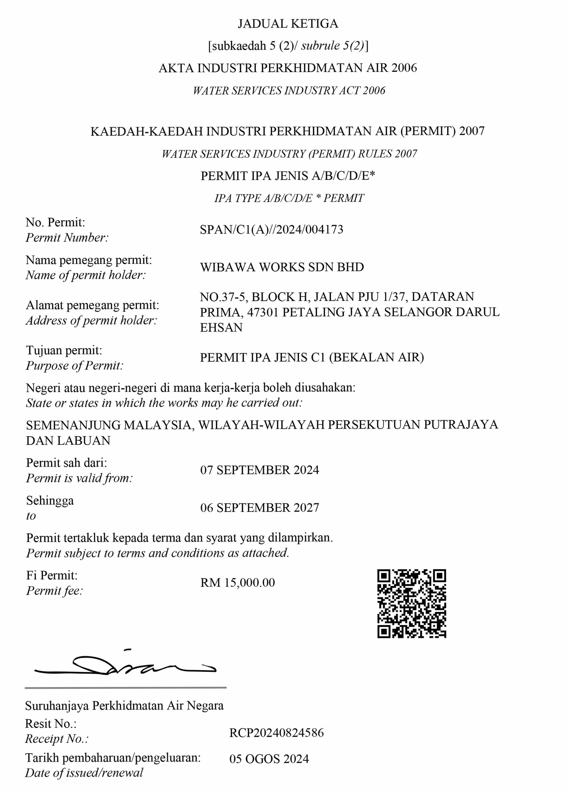 CERTIFICATIONS ISO 9001-2015 Pengurusan Air Pahang Sijil Pendaftaran Kementerian Kewangan SPKK CIDB -2026 CIDB-G7-2026 CIDB SCORE CERT-2026 SPAN 2026
